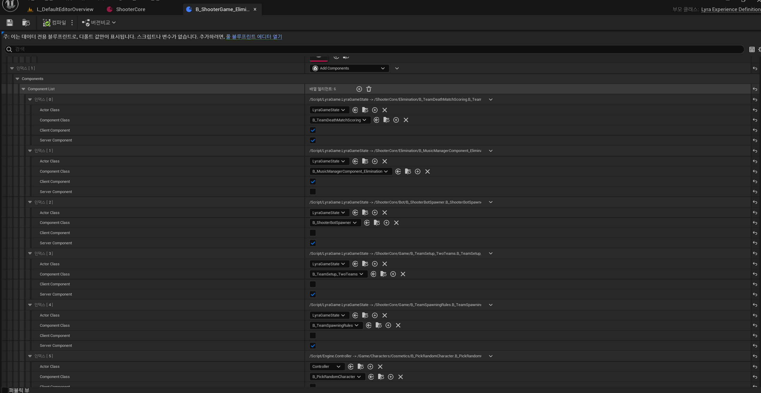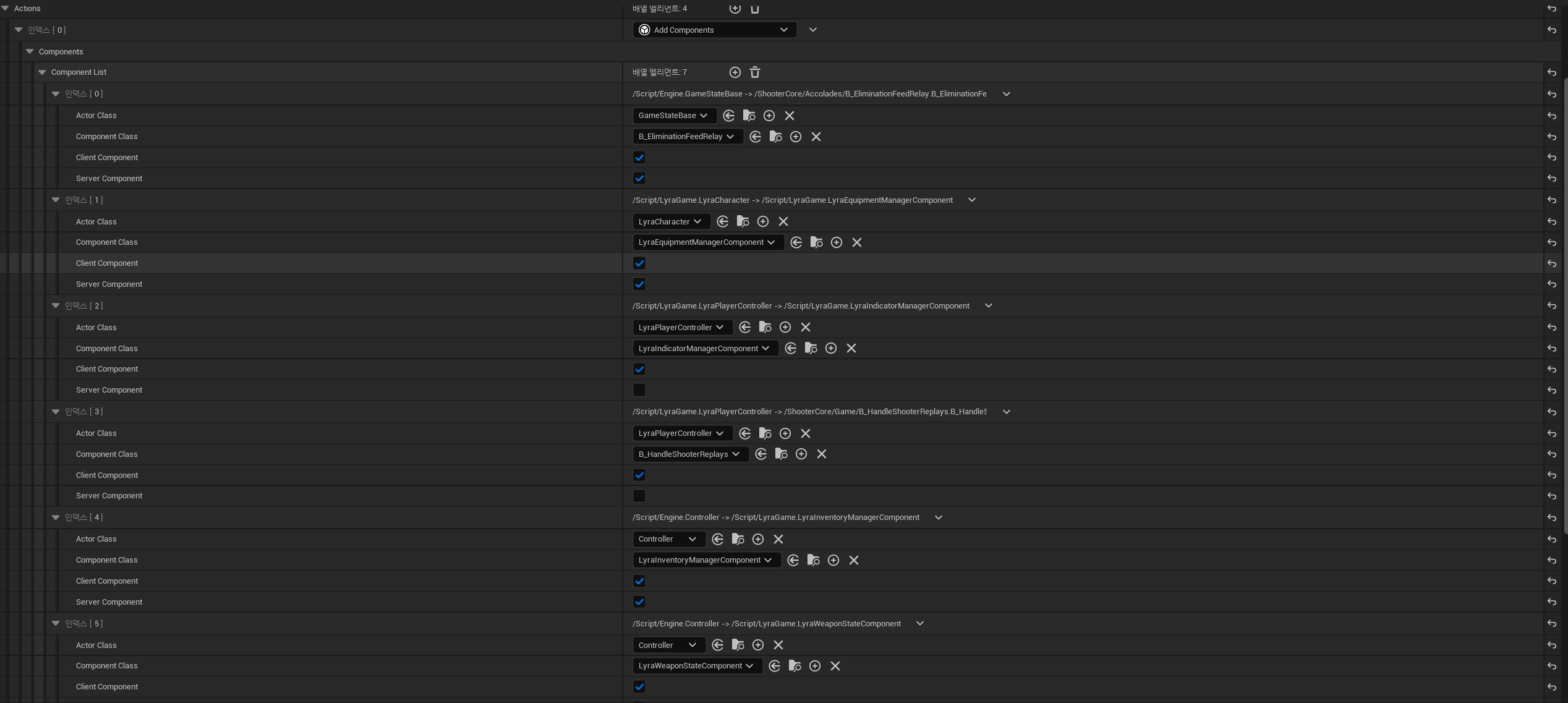 - 또한, Experience 와 Game Feature 둘 다 컴포넌트 추가가 가능하고, 둘 중 한곳만 사용하는 게 아니라 두 곳에서 다른 컴포넌트들을 추가하고 있다.