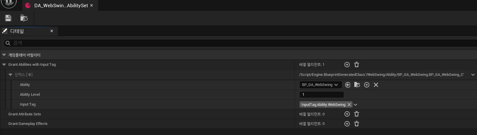 AbilitySet은 타겟 액터에 어빌리티, 어트리뷰트, 게임플레이 이펙트들을 추가할 수 있는 액션입니다.