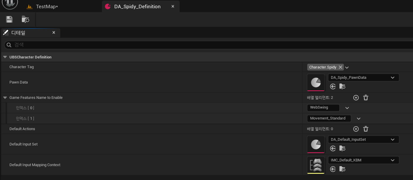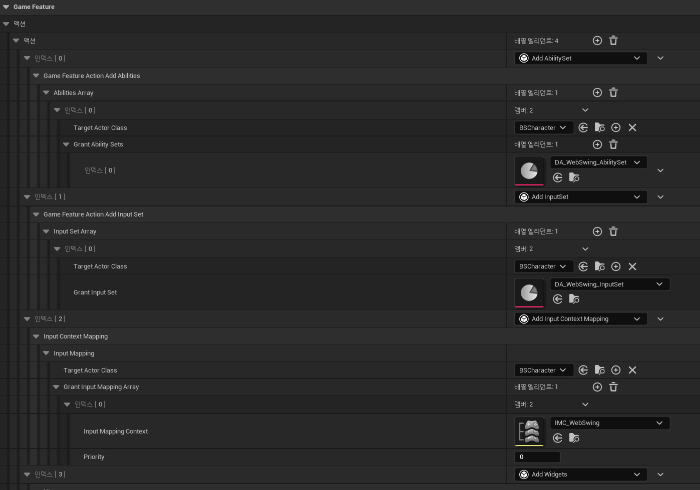 이 캐릭터에 적용할 GameFeatureAction, InputSet, IMC입니다.