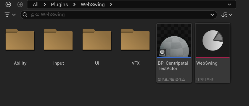 이 게임피처에 해당하는 콘텐츠들은 해당 게임 피처 플러그인 폴더 안에 저장되어 있습니다.